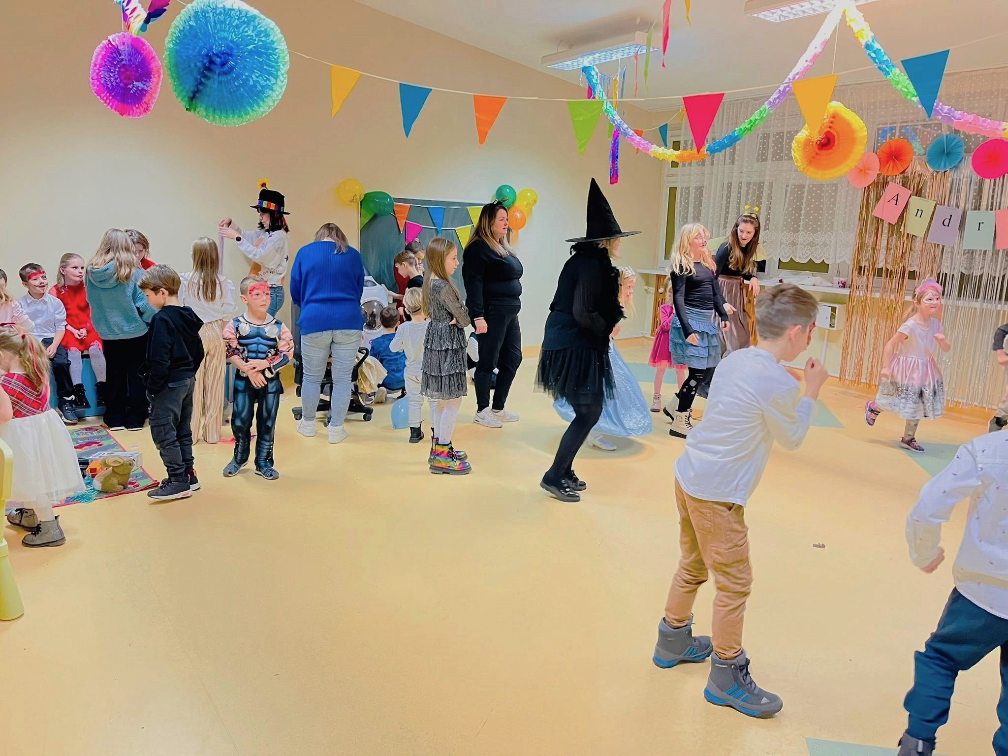 Podopieczni licznie przybyli na bal i angażowali się we wszystkie zabawy. Dzieci wystąpiły w wyjątkowych przebraniach: były księżniczki, wróżki, czarodzieje i superbohaterowie. Wszyscy świetnie się bawili w rytm towarzyszącej muzyki, a to wszystko w pięknie i kolorowo przystrojonej sali. Nie mogło oczywiście zabraknąć dyplomów uznania za aktywny udział w zabawie i poczęstunku, za który serdecznie dziękujemy Panu Pawłowi Górzyńskiemu z firmy „Piekarnia Górzyński” Sp. j.w Lubinie.