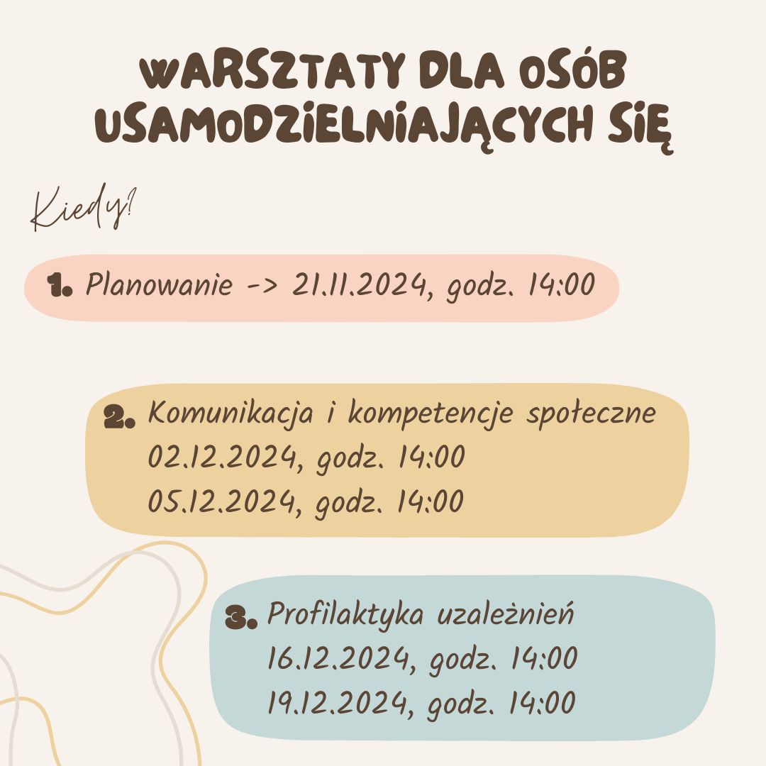 W dniach 24 i 29 października 2024 r. odbyły się warsztaty dla osób usamodzielniających się. Poruszona została tematyka kompetencji osobistych oraz aktywnego poszukiwania pracy.