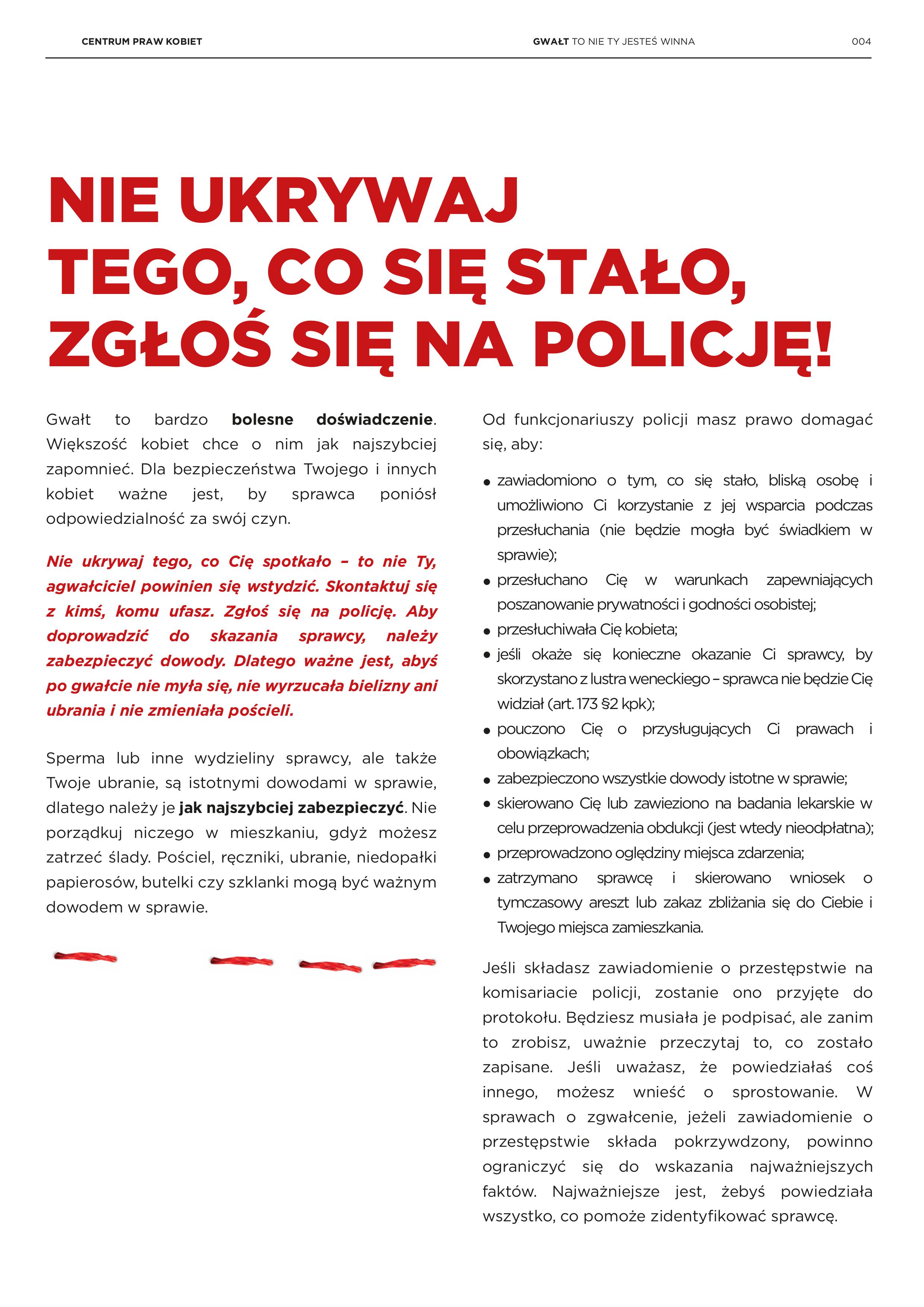 PAMIĘTAJ ! Czynność przyjęcia zawiadomienia o popełnieniu przestępstwa zgwałcenia nie może powodować wtórnej wiktymizacji pokrzywdzonego.