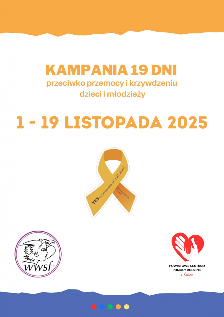 Powiatowe Centrum Pomocy Rodzinie w Lubinie po raz kolejny aktywnie włącza się w ogólnoświatową kampanię „19 dni przeciwko krzywdzeniu dzieci i młodzieży” oraz ogólnopolską kampanię „Dzieciństwo bez przemocy”. Celem tych inicjatyw jest zwiększenie świadomości społeczności lokalnej na temat różnych form przemocy wobec najmłodszych oraz promowanie postaw opartych na szacunku, empatii i odpowiedzialności.