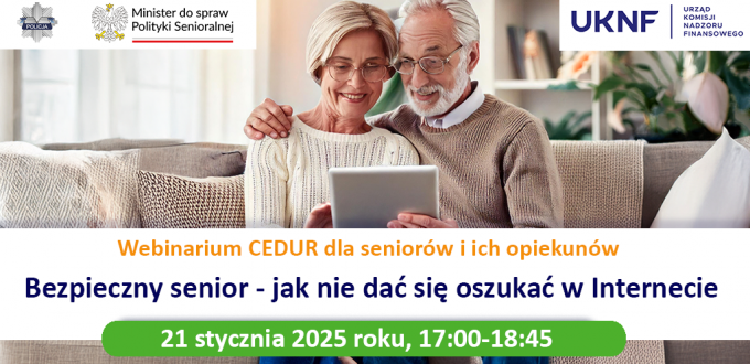 Webinarium dla SENIORÓW oraz ich OPIEKUNÓW „BEZPIECZNY SENIOR – JAK NIE DAĆ SIĘ OSZUKAĆ